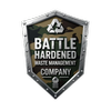 Flyer for Battle Hardened Waste Management Company offers valet trash services in the Greater Charlotte Area, with a logo featuring a shield, camouflage, and recycling symbols, and a promotion for up to 10% discount.